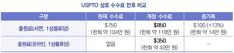 | 미국 특허상표청, 2025년 1월 18일부터 상표 수수료 인상 등 발표 |