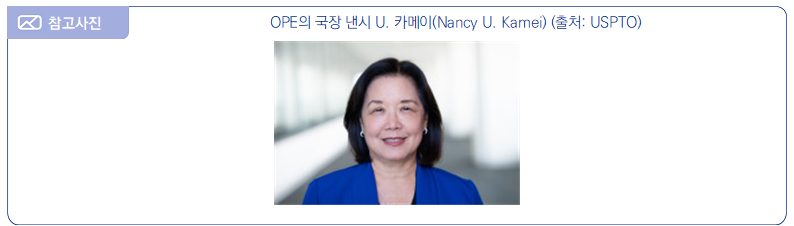 ∙ 2024년 10월 21일, 미국 특허상표청(USPTO)은 낸시 U. 카메이(Nancy U. Kamei)를 공공 참여 사무국(Office of Public Engagement, OPE) 국장(Chief Officer)으로 임명한다고 발표함