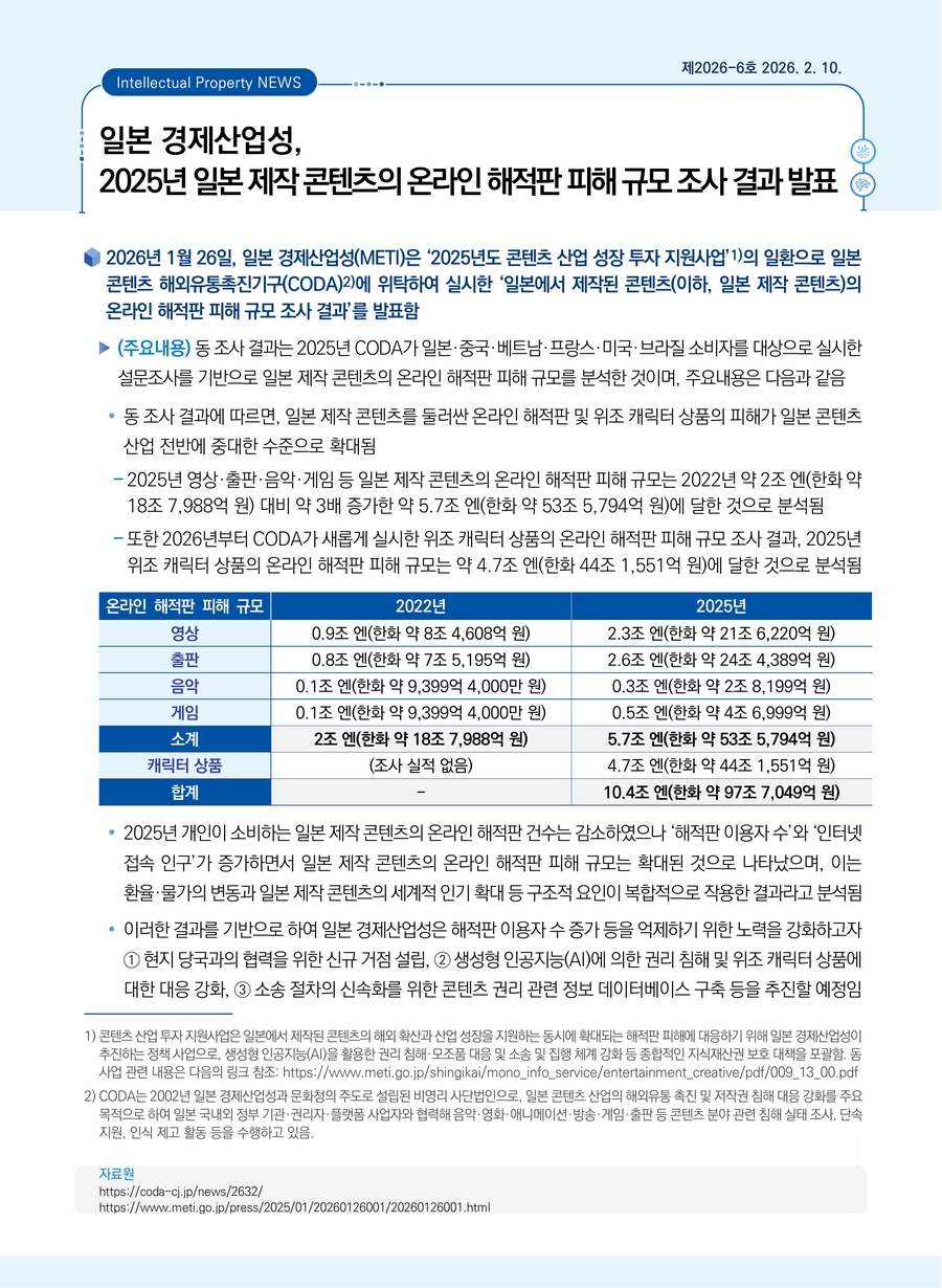 일본 경제산업성, 2025년 일본 제작 콘텐츠의 온라인 해적판 피해 규모 조사 결과 발표