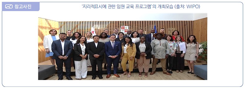 - (개요) WIPO의 ‘지식재산에 관한 WIPO 아카데미 임원 교육 프로그램(WIPO Academy Executive Training Program on intellectual property)’의 일환인 동 프로그램은 공공·민간 부문의 임원 및 전문가들이 지식재산(IP) 지식을 습득하고 실용적인 IP 기술을 개발하고자 하는 것이 주 목적임 - (주요내용) ‘GI에 관한 임원 교육 프로그램’의 주요내용은 다음과 같음 ∙ (기간) 2024년 9월 9일 – 9월 13일 ∙ (장소) 조지아의 수도 트빌리시(Tbilisi) ∙ (목적) 원산지와 관련된 국가 제품을 홍보하는 강력한 도구로서 GI의 보호와 활용에 대해 교육 ∙ (논의사항) 다양한 범주의 GI와 원산지 명칭에 대한 효과적인 지정 및 관리 메커니즘을 설계하고 지속가능한 발전 및 일자리 창출을 위한 맞춤형 공동 관리 전략을 구현하는 방법 등에 대해 집중적으로 논의 ![]()