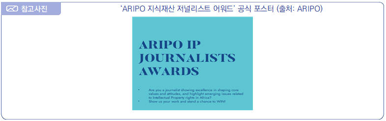 | 아프리카 지역지식재산기구, ‘ARIPO 지식재산 저널리스트 어워드’ 공모 최초 실시 |