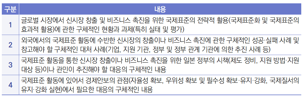 ∙ 2024년 8월 9일, 일본 내각부 지적재산전략추진사무국(内閣府 知的財産戦略推進事務局)은 일본의 국제표준에 관한 국가전략을 수립하기 위해 정보제공요청(RFI)을 실시함