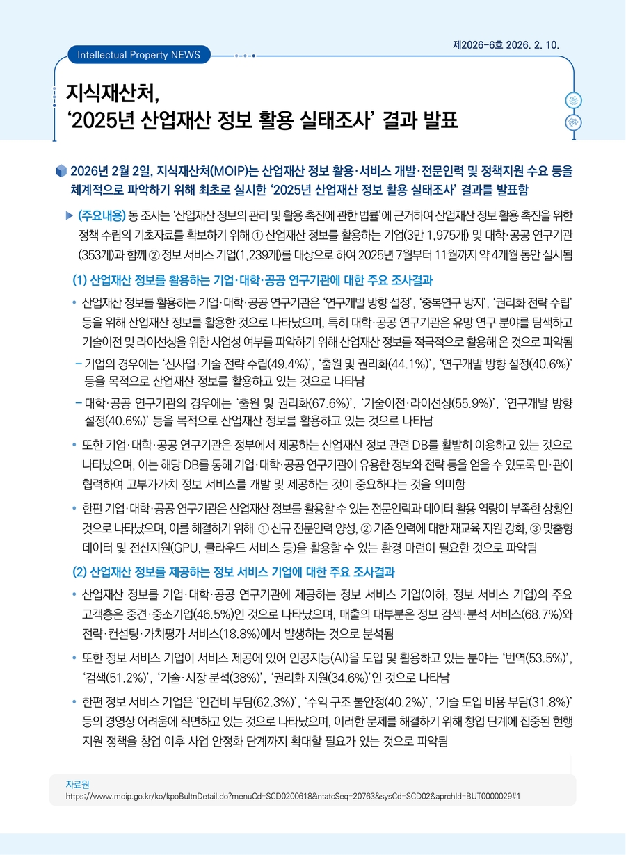 지식재산처, ‘2025년 산업재산 정보 활용 실태조사’ 결과 발표
