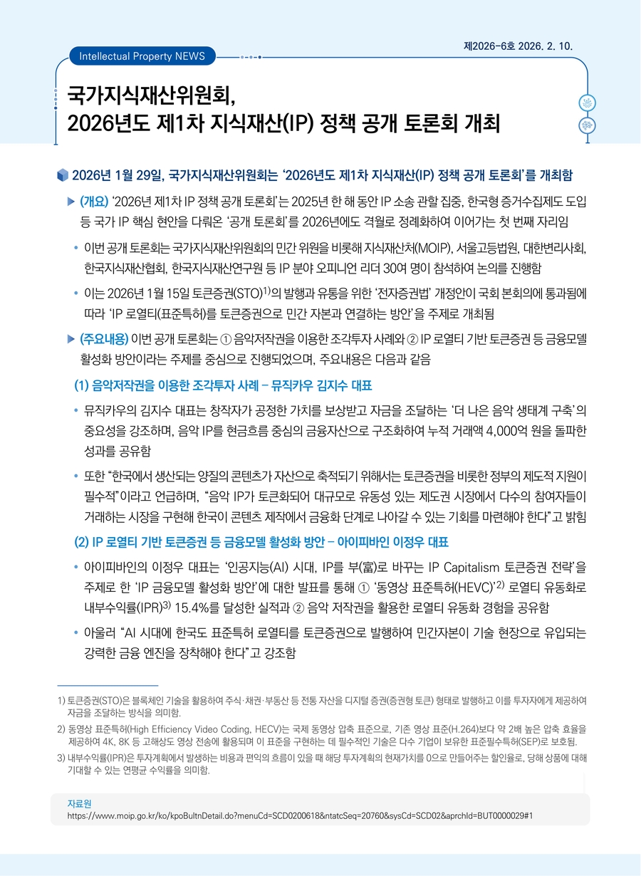 국가지식재산위원회, 2026년도 제1차 지식재산(IP) 정책 공개 토론회 개최