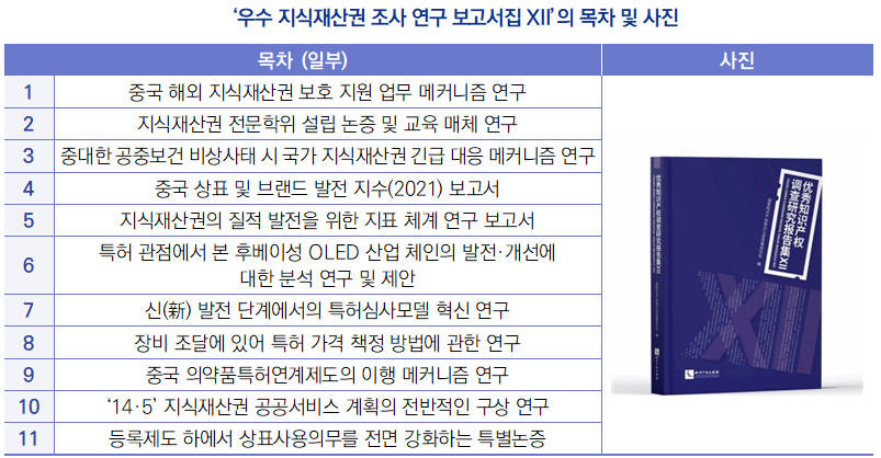 | 중국 국가지식산권국, ‘우수 지식재산권 조사 연구 보고서집 XII’ 출간 |