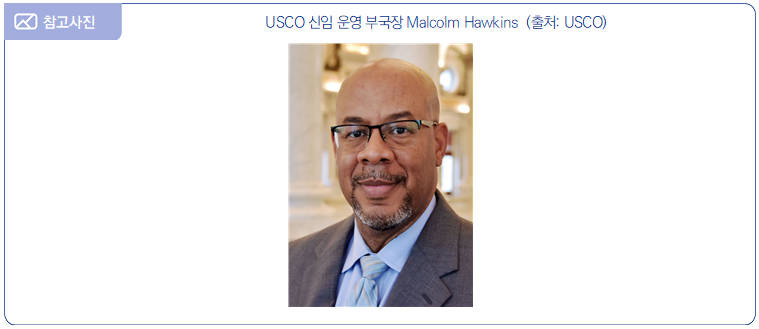 - (주요내용) 동 발표의 주요내용은 다음과 같음 ∙ Malcolm Hawkins는 메릴랜드 대학교(University of Maryland)에서 학사 학위를, 피닉스 대학교(University of Phoenix)에서 MBA를 취득한 뒤, 미국 국방부(DOD)에서 다양한 역할을 수행해 옴 ∙ DOD에서 주로 계획, 프로그램, 예산 편성 및 집행에 관해 고위 경영진에게 자문을 제공하고 국방 자살 예방 사무국(Defense Suicide Prevention Office)의 프로그램 등 다수의 프로그램 감독 업무를 담당하였으며 20년이 넘는 재직기간 중 마지막 업무는 DOD 정책차관실 인력팀장을 역임함 ∙ 이후 2020년 11월, USCO에 입사한 뒤 인사 문제와 노사 관계, 직원 및 작업장 안전, 인사 보안, 시설 관리에 대한 감독과 조정을 담당함 ∙ 그 밖에도 미국 의회도서관(Library of Congress)의 인적 자본 자문위원회(Human Capital Advisory Board)에서 활동함 ∙ 향후 Malcolm Hawkins는 USCO의 전략 계획, 재무 관리 활동, 비즈니스 프로세스를 통해 USCO의 운영국장(Assistant Register and Director of Operations)을 보좌하는 업무를 수행할 계획임