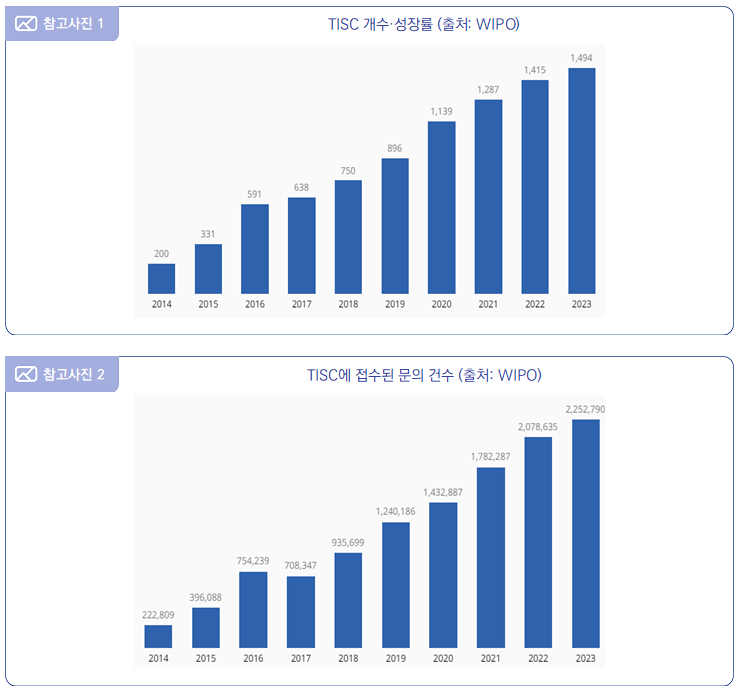 ∙ 2024년 7월 12일, 세계지식재산기구(WIPO)는 ‘기술및혁신지원센터(TISC)1) 보고서 2023(Technology and Innovation Support Centers (TISCs) Report 2023)’2)을 발표함