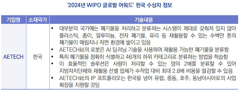 | 세계지식재산기구, 한국 AETECH社 등에게 2024년 WIPO 글로벌 어워드 시상 |