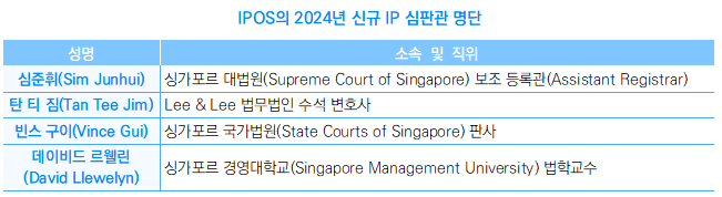 • 2024년 4월 1일, 싱가포르 지식재산청(IPOS)은 2024년부터 변경되는 이사회 임원진을 비롯하여 신규 지식재산 심판관(IP Adjudicators) 명단을 발표함