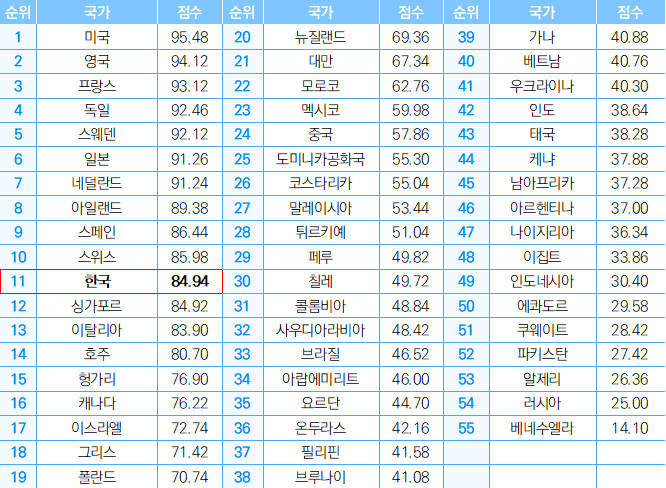 | 미국 상공회의소, ‘2024년 국제지식재산 지수’ 발표 |