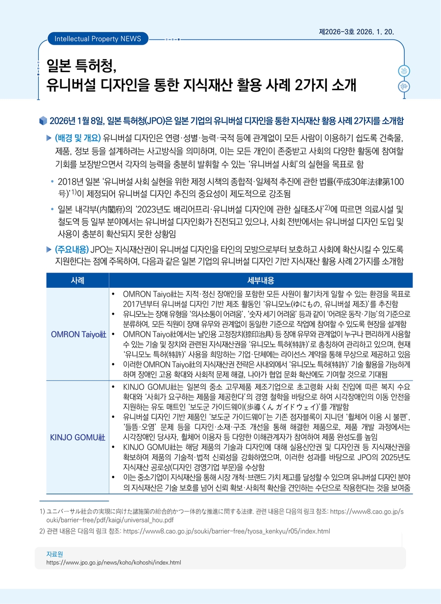 일본 특허청, 유니버설 디자인을 통한 지식재산 활용 사례 2가지 소개