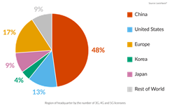 (2) 지속가능한 혁신 ∙ 렉시스넥시스의 ‘글로벌 지속가능한 혁신 환경 탐색: 100대 기업’ 보고서 ‘글로벌 지속가능한 혁신 환경 탐색: 100대 기업(Exploring the Global Sustainable Innovation Landscape: The Top100 Companies and Beyond)’ 보고서에서는 지속가능한 혁신 환경에 초점을 맞추고 SDGs 관점에서 글로벌 특허 환경을 평가하고 보유한 지속가능 관련 발명의 품질에 따라 순위를 매긴 100대 기업을 공개함. 에 따르면 특허 포트폴리오를 보유한 글로벌 100대 기업 중 75%가 자사의 비즈니스 목표와 국제연합(UN)의 지속가능발전목표(SDG) 관련성을 언급하는 등 기업들은 점점 더욱 지속가능한 개발에 전략을 맞추고 있음 ∙ 지난 20년간 SDG 관련 특허는 약 3배 증가하였고, SDG 관련 특허 포트폴리오 측면에서 절대적 강점을 가진 기업은 삼성, 존슨앤드존슨, 도요타자동차로 나타남 (3) 5G 특허 경쟁 ∙ ‘5G 특허 경쟁을 누가 이끌고 있는가’ 보고서에 따르면 선언된 5G 특허 패밀리(declared 5G patent families)는 6만 건이 넘고, 매년 5천 건씩 증가하고 있음 ∙ 특히 중국 기업은 선언된 5G 특허 패밀리의 32%, 표준필수특허(Standard Essential Patent, SEP) 라이선스의 48%를 차지함 5G 특허 경쟁 관련 도표 (출처: 렉시스넥시스)