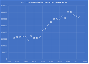 ∙ 2023년 12월 29일, 미국 Patently-O는 2023년도 미국의 전체 특허(Utility Patents)등록 건수를 발표함