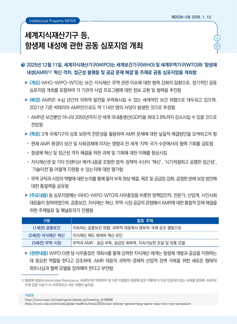 세계지식재산기구 등, 항생제 내성에 관한 공동 심포지엄 개최