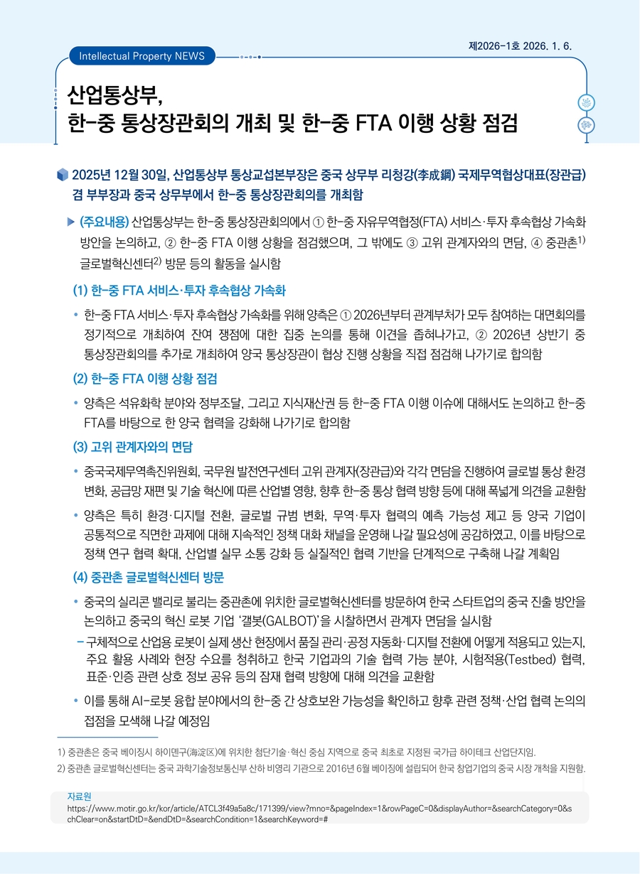 산업통상부, 한-중 통상장관회의 개최 및 한-중 FTA 이행 상황 점검