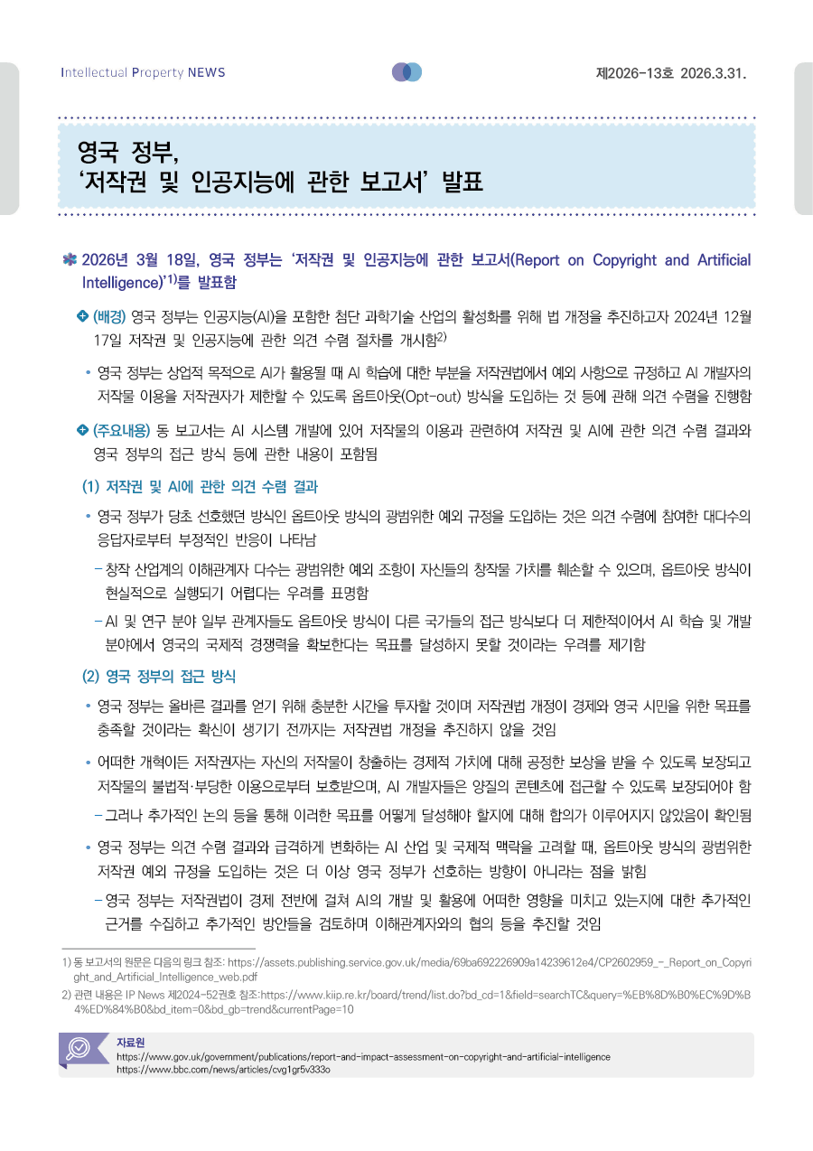 영국 정부, ‘저작권 및 인공지능에 관한 보고서’ 발표