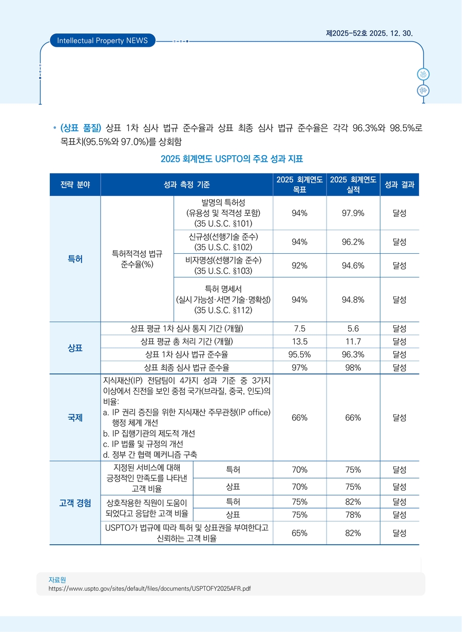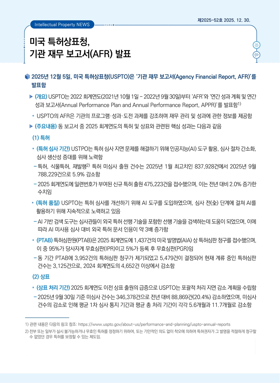 미국 특허상표청, 기관 재무 보고서(AFR) 발표