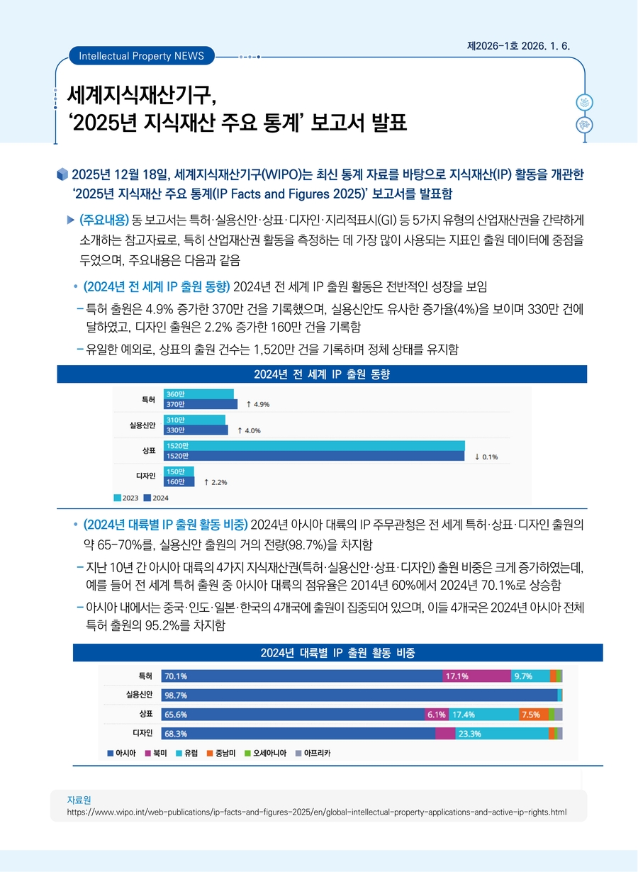 세계지식재산기구, ‘2025년 지식재산 주요 통계’ 보고서 발표