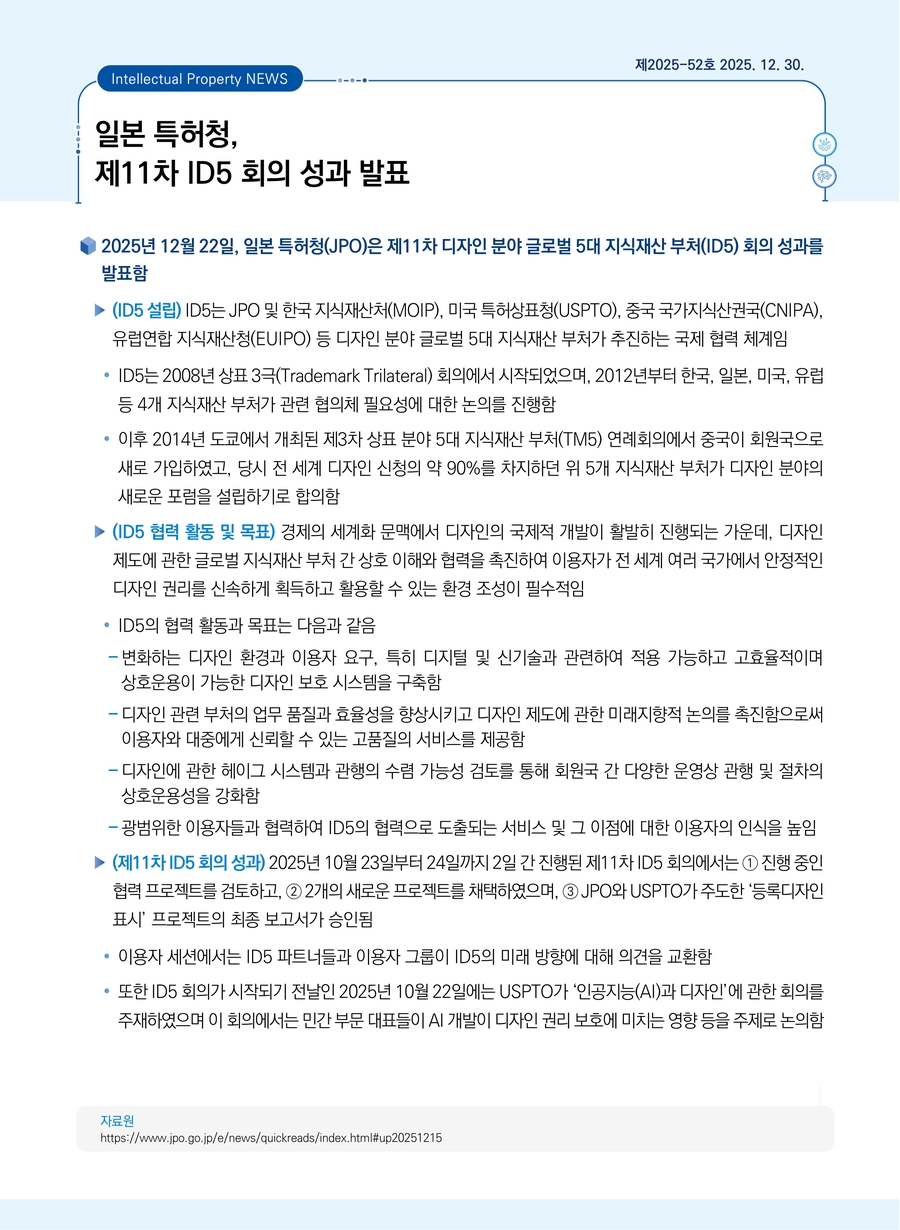 일본 특허청, 제11차 ID5 회의 성과 발표