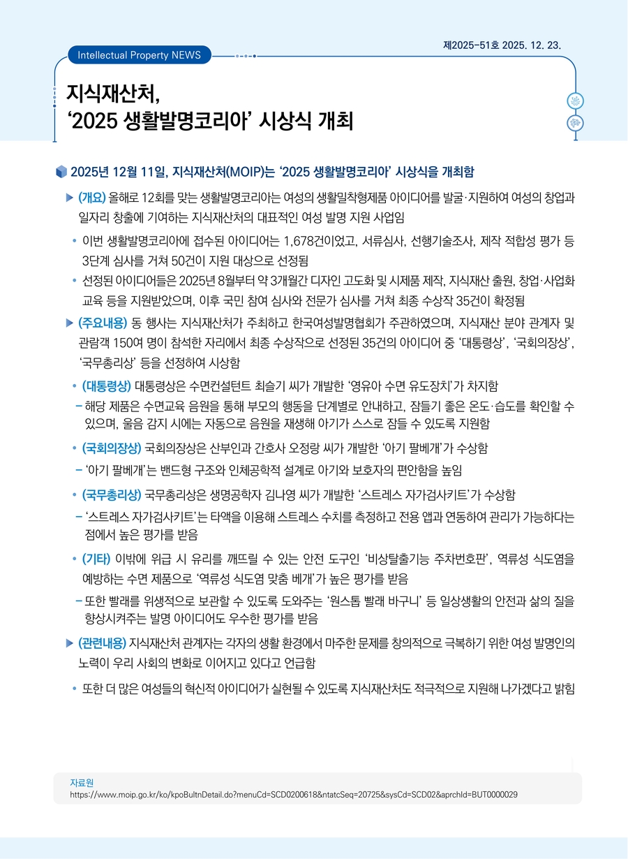 지식재산처, ‘2025 생활발명코리아’ 시상식 개최