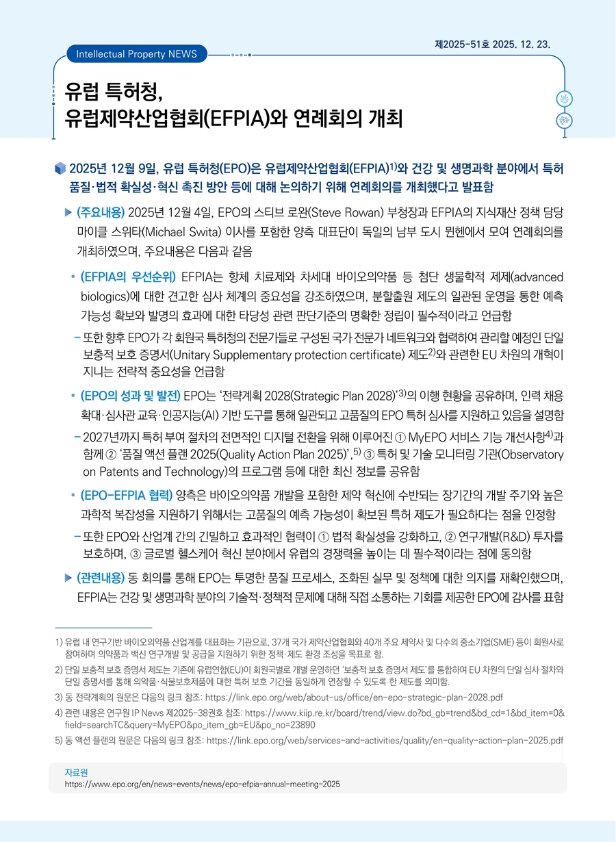 유럽 특허청, 유럽제약산업협회(EFPIA)와 연례회의 개최