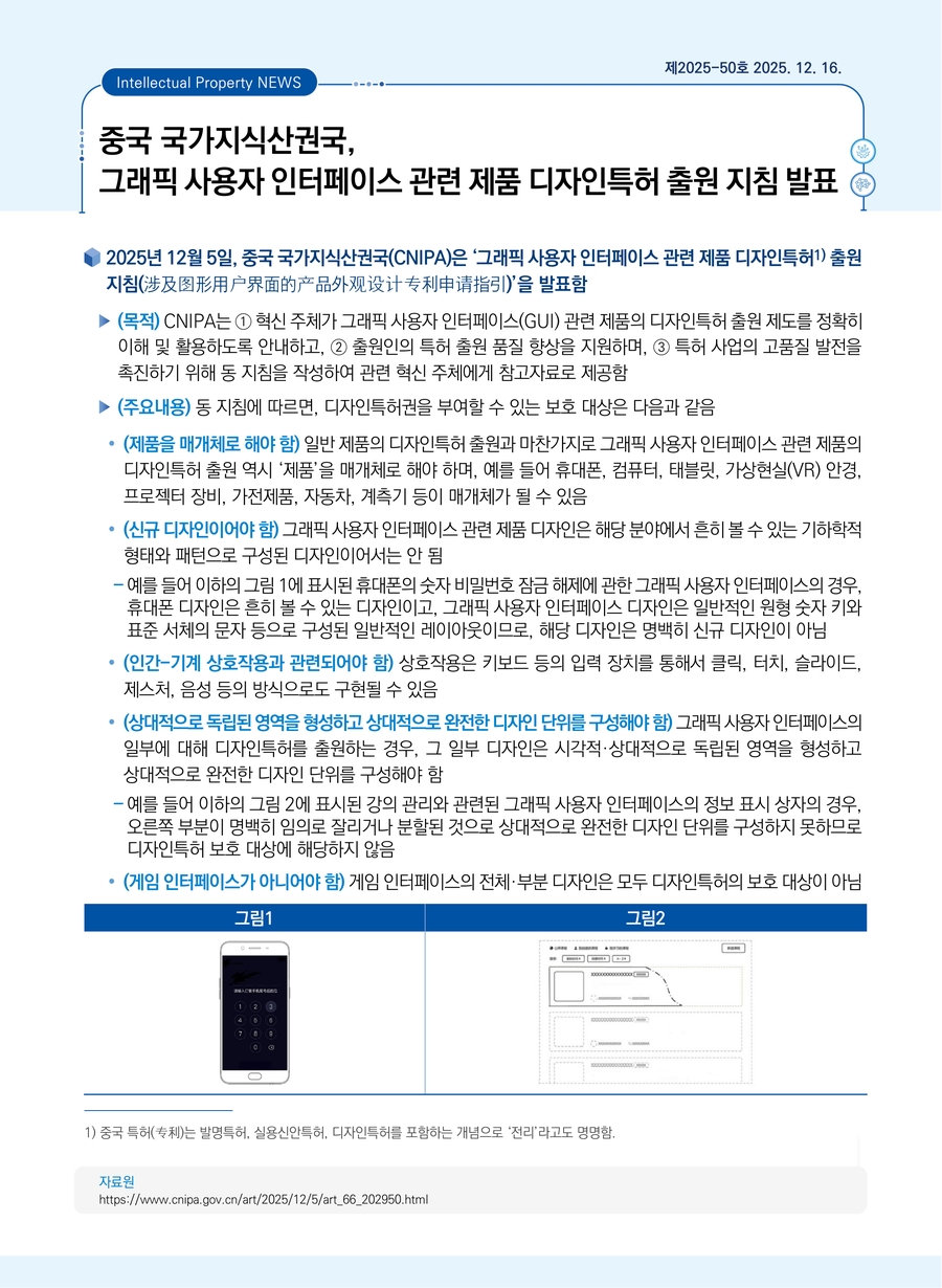 중국 국가지식산권국, 그래픽 사용자 인터페이스 관련 제품 디자인에 관한 특허 출원 지침 발표