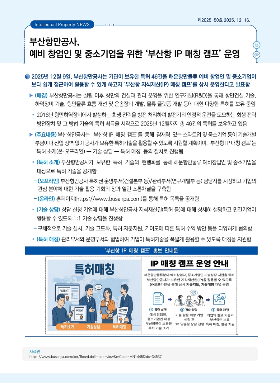 부산항만공사, 예비 창업인 및 중소기업을 위한 ‘부산항 IP 매칭 캠프’ 운영
