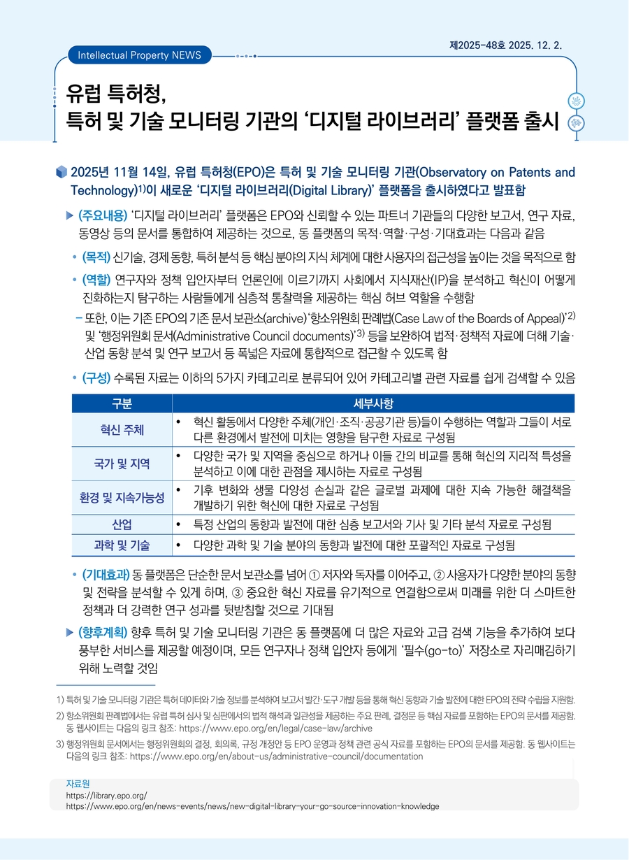 유럽 특허청, 특허 및 기술 모니터링 기관의 ‘디지털 라이브러리’ 플랫폼 출시