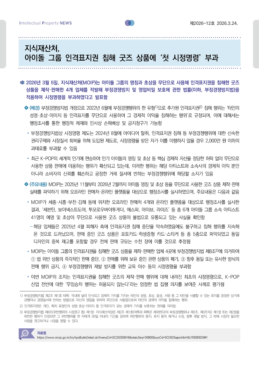 지식재산처, 아이돌 그룹 인격표지권 침해 굿즈 상품에 ‘첫 시정명령’ 부과