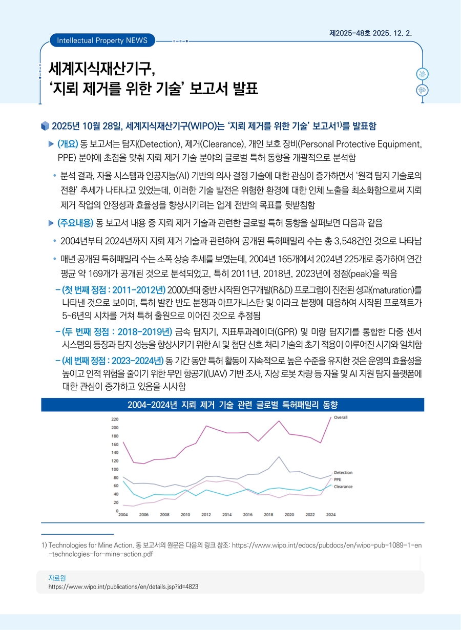 세계지식재산기구, ‘지뢰 제거를 위한 기술’ 보고서 발표