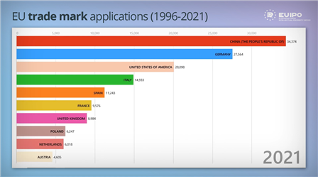 | 유럽 지식재산청, 2021년 EUTM 출원 성과 공개 |
