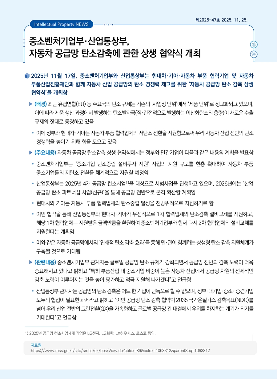 중소벤처기업부·산업통상부, 자동차 공급망 탄소감축에 관한 상생 협약식 개최