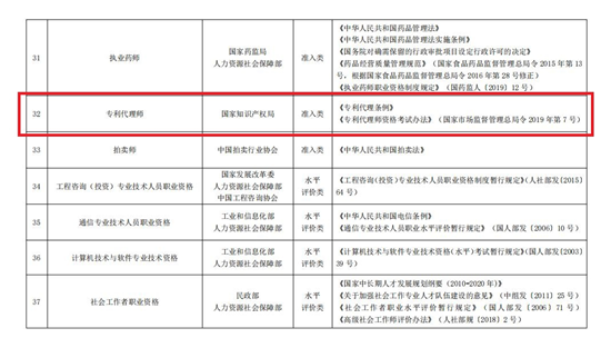 · 이는 2019년 3월 1일부터 시행된 개정 특허대리조례(专利代理条例)에 따라 ‘특허대리인(专利代理人)’의 명칭이 ‘특허대리사’로 변경된 이후 국가직업자격목록에 정식으로 등재된 것으로 의의가 있음