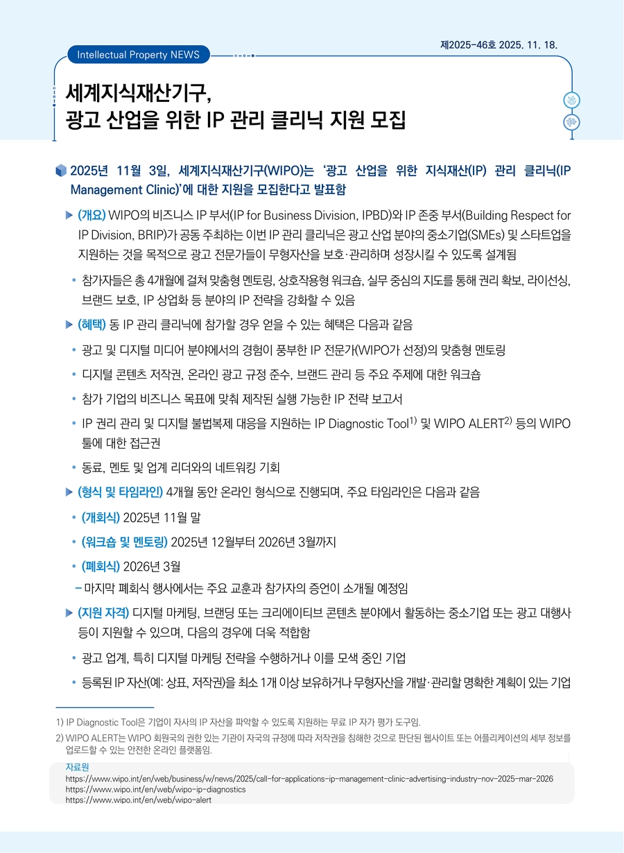 세계지식재산기구, 광고 산업을 위한 IP 관리 클리닉 지원 모집