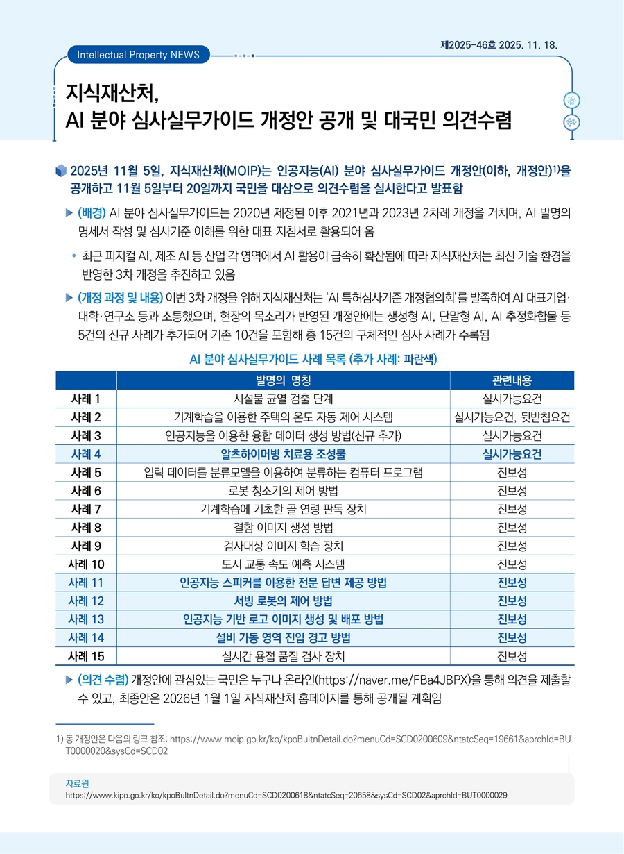 지식재산처, AI 분야 심사실무가이드 개정안 공개 및 대국민 의견수렴