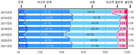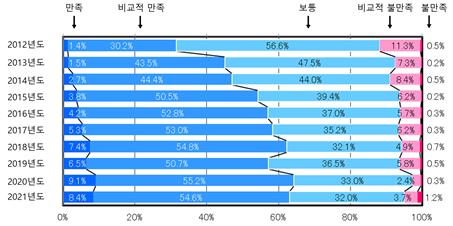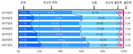· 심사품질에 대해 ‘만족’, ‘비교적 만족’, ‘보통’, ‘비교적 불만족’, ‘불만족’의 5단계로 평가함