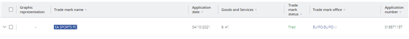 • 2021년 10월 4일, 미국 일렉트로닉 아츠(Electronic Arts, EA)社는 유럽 지식재산청(EUIPO)에 ‘EA SPORTS FC’ 상표를 출원함