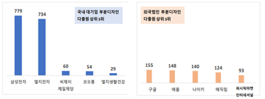 • 2021년 8월 23일, 특허청(KIPO)은 부분디자인제도에 대한 디자인 출원 현황을 공개함