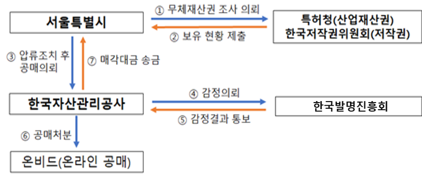 - (주요내용) 고액체납자가 현재까지 체납하고 있는 금액은 총 1,010억 원이며, 서울특별시가 이번 조사를 통해 확인한 고액체납자 보유 무체재산권은 특허권·상표권 등 산업재산권이 3,595건(699명)이고 어문저작물·음악저작물 등 저작권이 2,172건(361명)임 ∙ 지방세 관계법령에 의하면 세금 체납자에 대해서는 체납자의 부동산을 압류할 뿐 만 아니라 무체재산권도 압류하도록 되어 있으며 압류한 무체재산권은 공매를 통해 체납세금에 충당하게 됨 ∙ 하지만 무체재산권의 압류는 제3기관을 통한 압류 자료 확보 및 실익분석이 용이하지 않아 그동안 적극적으로 이루어지지 않았음 ∙ 한편, 서울시는 코로나19 재난 상황에서 체납자가 무체재산권을 활용해 경제활동을 하고 있을 수 있으므로, 즉시 압류 조치를 하지 않고 7월 30일까지 체납세금 납부 안내 및 무체재산권 압류 예고문을 발송하여 납부를 독려한 후, 납부 의지가 없을 시 압류 및 공매처분 등 후속 조치를 단행할 예정임 - (관련내용) 2021년 4월 서울특별시는 전국 지방자치단체 최초로 체납자 보유 가상자산(가상화폐)을 압류 조치한 바 있으며, 이번 무체재산권 전수조사 및 압류도 타 지방자치단체에 체납세금 징수의 모범사례가 될 것으로 기대됨