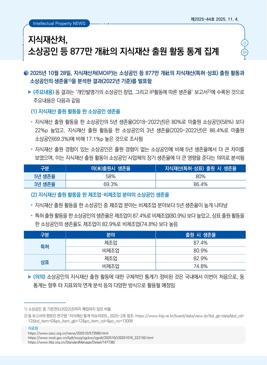 지식재산처, 소상공인 등 877만 개社의 지식재산 출원 활동 통계 집계