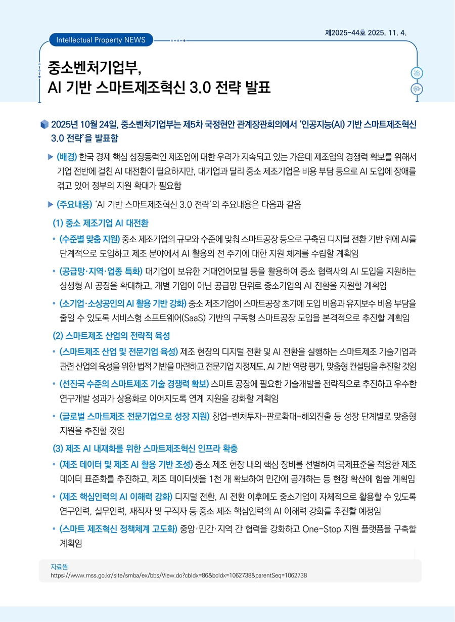 중소벤처기업부, AI 기반 스마트제조혁신 3.0 전략 발표