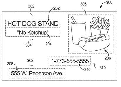 - (배경) 동 발명은 도로변에 재미있거나 흥미를 유도하는 광고 등 점포의 간판 및 세부 내용을 확인하고 싶지만, 자동차로 이동시 이러한 간판을 한순간에 지나쳐버리기 때문에 확인하기 어려운 문제를 해결하기 위해 고안됨 - (주요내용) 포드社가 출원한 발명의 명칭은 ‘차량 화면용 광고판 인터페이스(Billboard Interfaces for Vehicle Displays)’로 도로변의 간판에 관한 정보를 차량 내의 화면에 표시하는 기술임 ∙ 본 특허는 자동차에 탑재한 카메라로 촬영한 데이터로 도로변의 간판을 인식하고 그 간판의 내용과 관련된 정보를 차량 내부 화면에 표시하는 기술로, 예를 들어 레스토랑의 광고판을 인식했을 경우 그 레스토랑의 주소나 전화번호 등을 표시하는 기능을 수행함 ∙ 추가적으로는 내부화면에 표시된 간판에 하이퍼링크를 마련해 터치 조작 등을 통해서 관련 정보를 더욱 구체적으로 나타내는 기술도 언급하고 있는데, 예를 들어 점포의 안내 간판의 경우, 해당 점포까지의 경로를 내비게이션으로 안내하거나 해당 점포의 도착 예정 시간에 상품을 받을 수 있도록 전화주문을 하는 기능도 가능할 것으로 기대됨