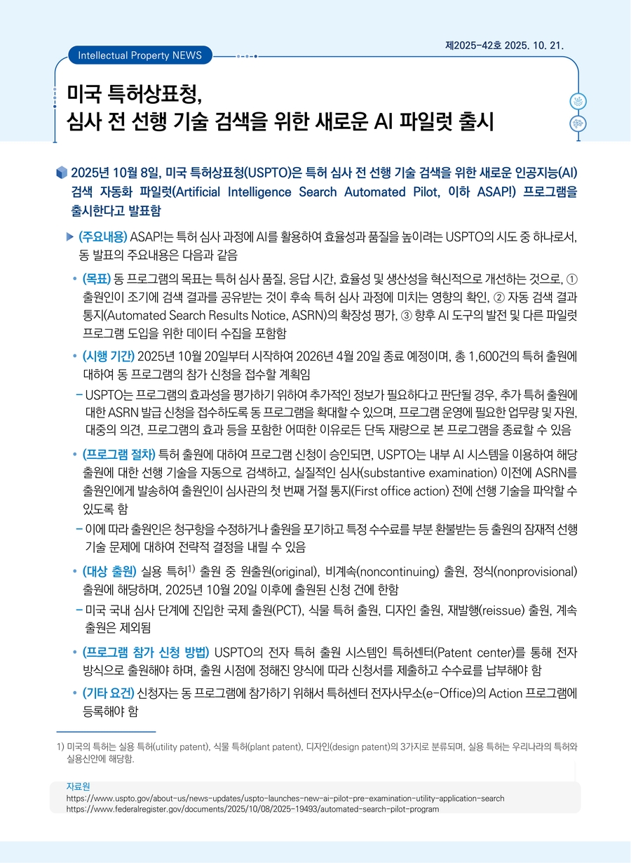 미국 특허상표청, 심사 전 선행 기술 검색을 위한 새로운 AI 파일럿 출시