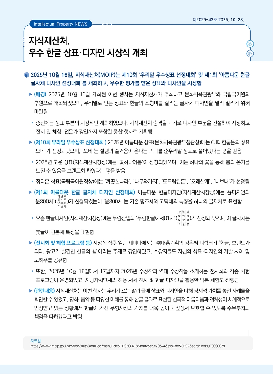 지식재산처, 우수 한글 상표·디자인 시상식 개최