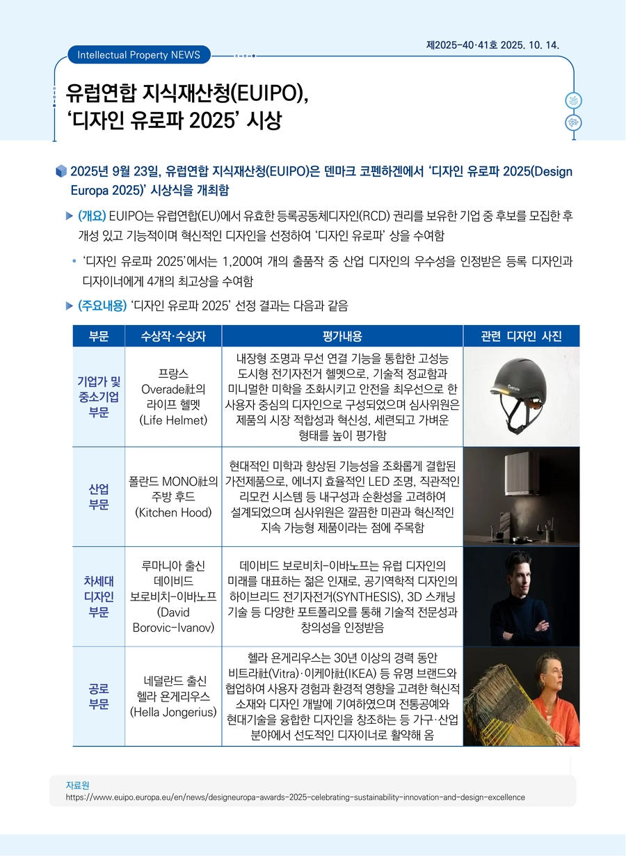 유럽연합 지식재산청(EUIPO), ‘디자인 유로파 2025’ 시상