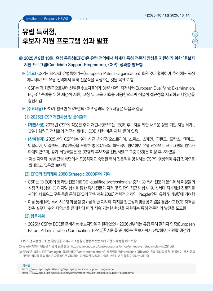 유럽 특허청, 후보자 지원 프로그램 성과 발표