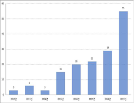 ● 2020년 11월 16일, 특허청((KIPO)은 최근 8년 동안(2012~2019) 롤러블 터치스크린에 관한 특허 출원 통계를 발표함