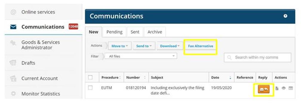 - (주요내용) EUIPO는 고객에게 최첨단 통신 도구를 제공한다는 목표 하에서, 팩스는 더 이상 기술적 관점에서 신뢰할 수 없다는 결정을 내리는 한편 고객은 전자적(electronically) 통신수단을 통해 EUIPO와 연락할 수 있다고 밝힘 ∙ 이에 따라 아직 팩스를 이용하는 이용자들에게 변경사항을 알리고 필요한 경우 대체적 통신 수단에 익숙해지도록 지원할 예정이며, 맞춤형 지원 안내 전화번호(+34 965 139 100)를 공지함 ∙ EUIPO는 전자 회신 버튼(e-Reply button)과 팩스 대체(Fax Alternative) 옵션을 소개함 - 전자 회신 버튼은 EUIPO가 응답을 허락한 모든 전자적 통신에서 사용할 수 있음 - 팩스 대체 옵션은 전자 회신 버튼을 사용하는데 기술적 어려움이 있는 경우 사용자영역(User Area)의 탭에서 사용할 수 있음 ∙ 또한 EUIPO의 시스템과 연결이 안 되는 경우를 고려해 파일 공유 옵션을 개발하고 있으며, 우편서비스는 지속적으로 허용된다고 안내함