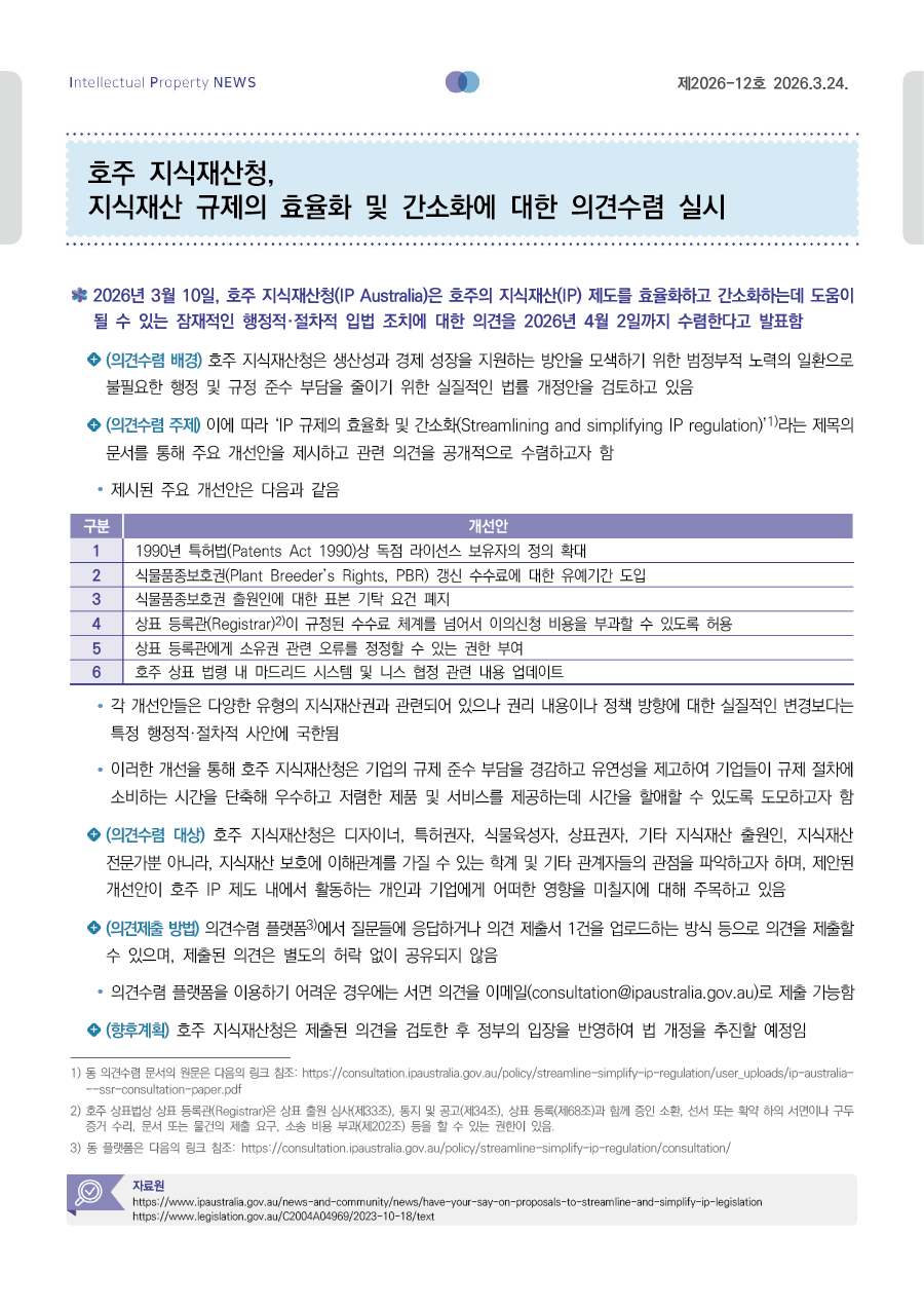 호주 지식재산청, 지식재산 규제의 효율화 및 간소화에 대한 의견수렴 실시