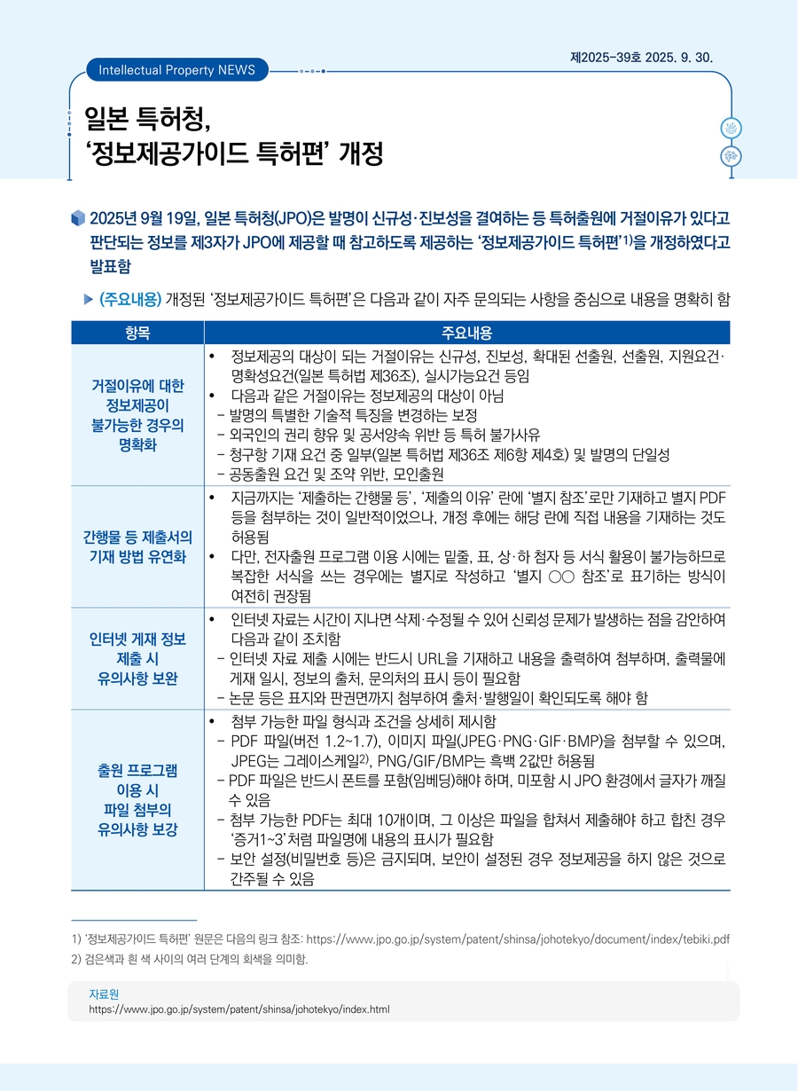 일본 특허청, ‘정보제공가이드 특허편’ 개정